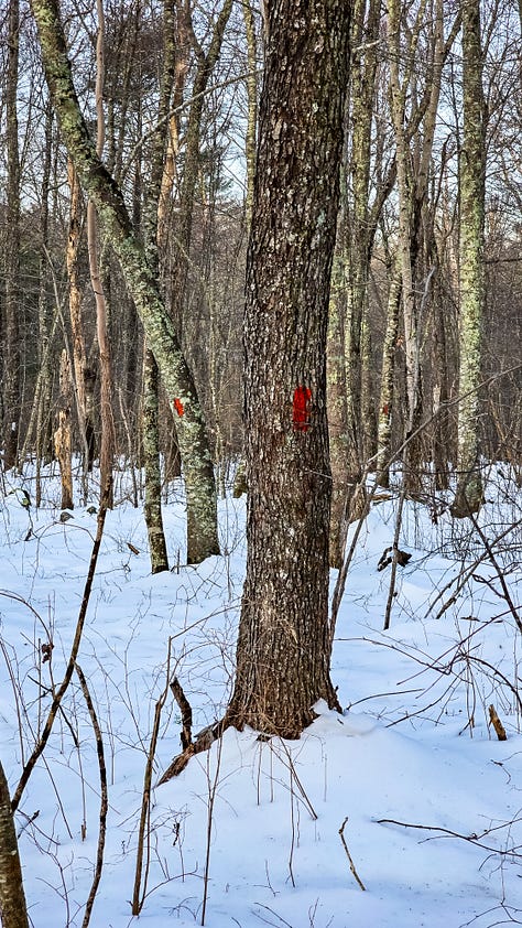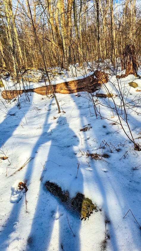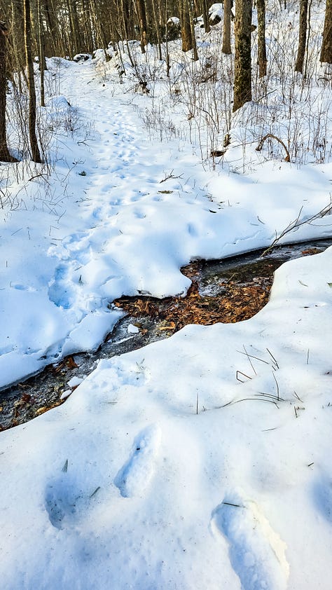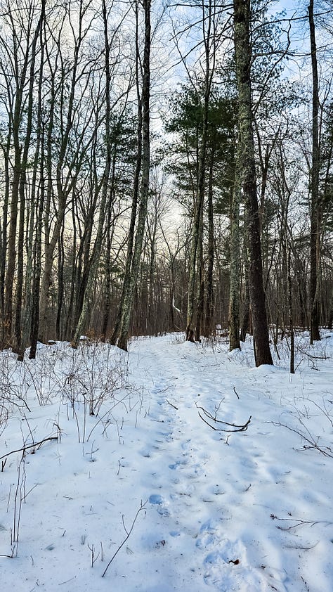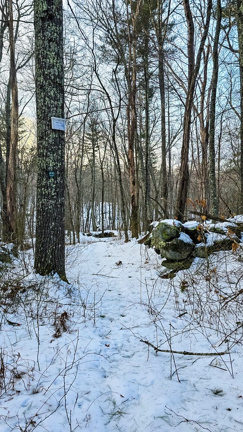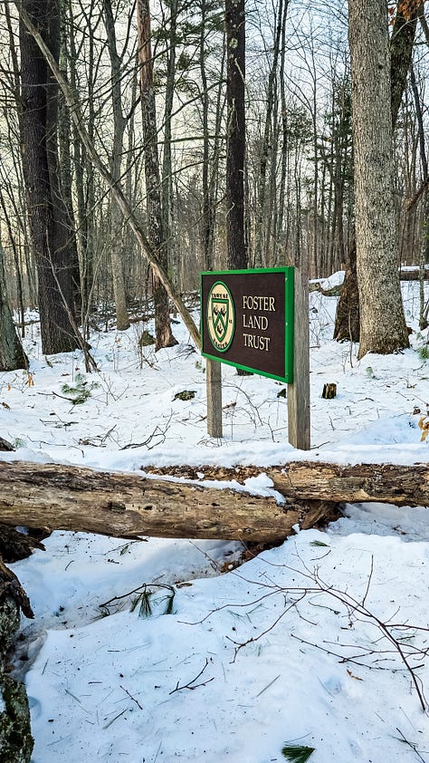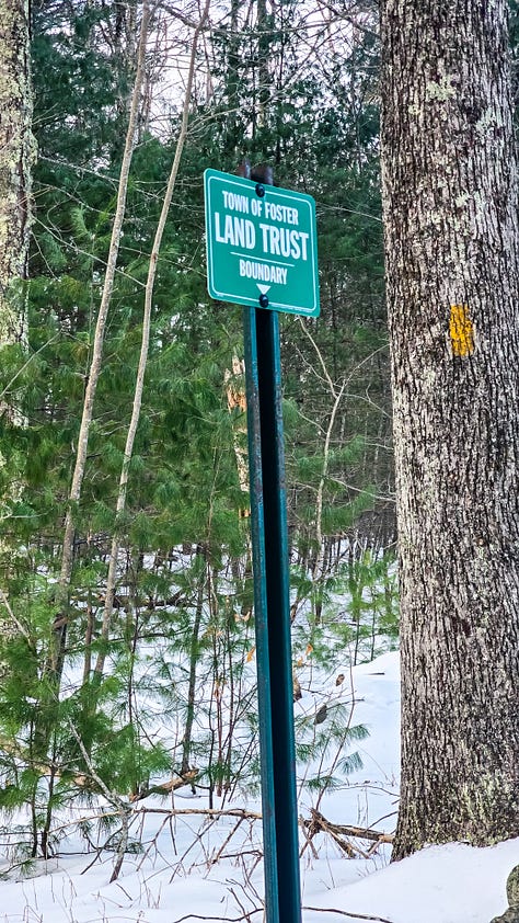 The hike: The morning I started off for this hike was a sneakily beautiful day - it began with overcast clouds plus a burst of quick color, but that changed by the time I arrived at the tiny parking lot. I had honestly never heard of this trail system, and even worse never really go to Foster (I know, I know). Their Land Trust offers 7 different rural areas that feature walking trails and history - I had my sight set on Hayfield for reasons no other than…. It seemed easy. I didn’t expect very much actually - not a lot of information on AllTrails, but I saw some green pics and even though I was going in the winter, I like to see potential in a hike.